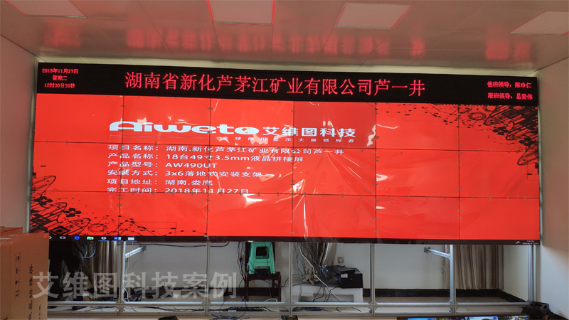 艾維圖科技為湖南省新化縣資煤集團(tuán)蘆茅江礦業(yè)有限公司精心打造的49英寸超窄邊液晶拼接墻AW490UT,共選用了18塊液晶拼接屏,組成3*6拼接墻。艾維圖液晶拼接墻AW490UT顯示系統(tǒng)采用LG49寸超窄邊液晶面板,非顯示區(qū)域之間拼縫僅為3.3mm,具有近乎無縫的顯示效果,對比度3500:1,顯示出的圖像色彩靚麗、還原性更好、層次感更突出。艾維圖產(chǎn)品獨具的內(nèi)置拼接功能:不需要控制器的內(nèi)置拼接顯示單元,所有的顯示拼接技術(shù)置于單個顯示單元中,通過軟件來調(diào)節(jié);LAN控制功能實現(xiàn)網(wǎng)絡(luò)控制:不但可以通過RS232串口來實現(xiàn)遠(yuǎn)程控制,還可以通過網(wǎng)絡(luò)連接進(jìn)行控制,控制更方便靈活。可靠性高,畫面穩(wěn)定,完全達(dá)到監(jiān)控領(lǐng)域?qū)ζ唇訅δ軌蜷L時間不間斷的穩(wěn)定運行的標(biāo)準(zhǔn)。
