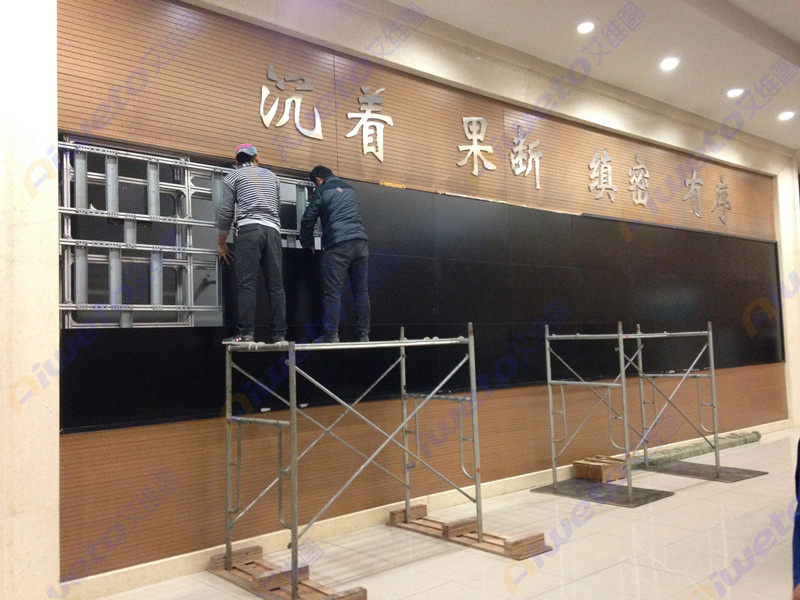 通過對(duì)客戶使用需求和部署環(huán)境的認(rèn)真研究和考察,Aiweto(艾維圖)科技工程師給出了多套相關(guān)解決方案,最終選用了由40臺(tái)(Aiweto)55寸高亮液晶拼接單元組成的4×10大屏幕液晶拼接墻。(Aiweto)55寸液晶拼接單元采用工業(yè)級(jí)面板,采用先進(jìn)的集成處理芯片,性能穩(wěn)定,運(yùn)動(dòng)圖像補(bǔ)償?shù)泉?dú)有的先進(jìn)技術(shù),有效的保證了輸出圖像的效果,支持7×24小時(shí)開機(jī),拼接邊縫小,適合大屏液晶拼接項(xiàng)目應(yīng)用。